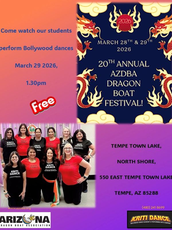 Come experience the 20th annual AZ Dragon Boat festival and watch live Bollywood dances showcasing the rich culture from India. Free, fun, family-friendly event, open to all.